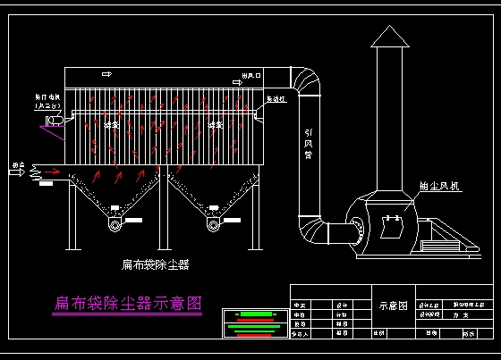 袋式除尘器是一种干式滤尘装置。它适用于捕集细小、干燥、非纤维性粉尘。滤袋采用纺织的滤布或非纺织的毡制成,利用纤维织物的过滤作用对含尘气体进行过滤,当含尘气体进入袋式除尘器后,颗粒大、比重大的粉尘,由于重力的作用沉降下来,落入灰斗,含有较细小粉尘的气体在通过滤料时,粉尘被阻留,使气体得到净化。